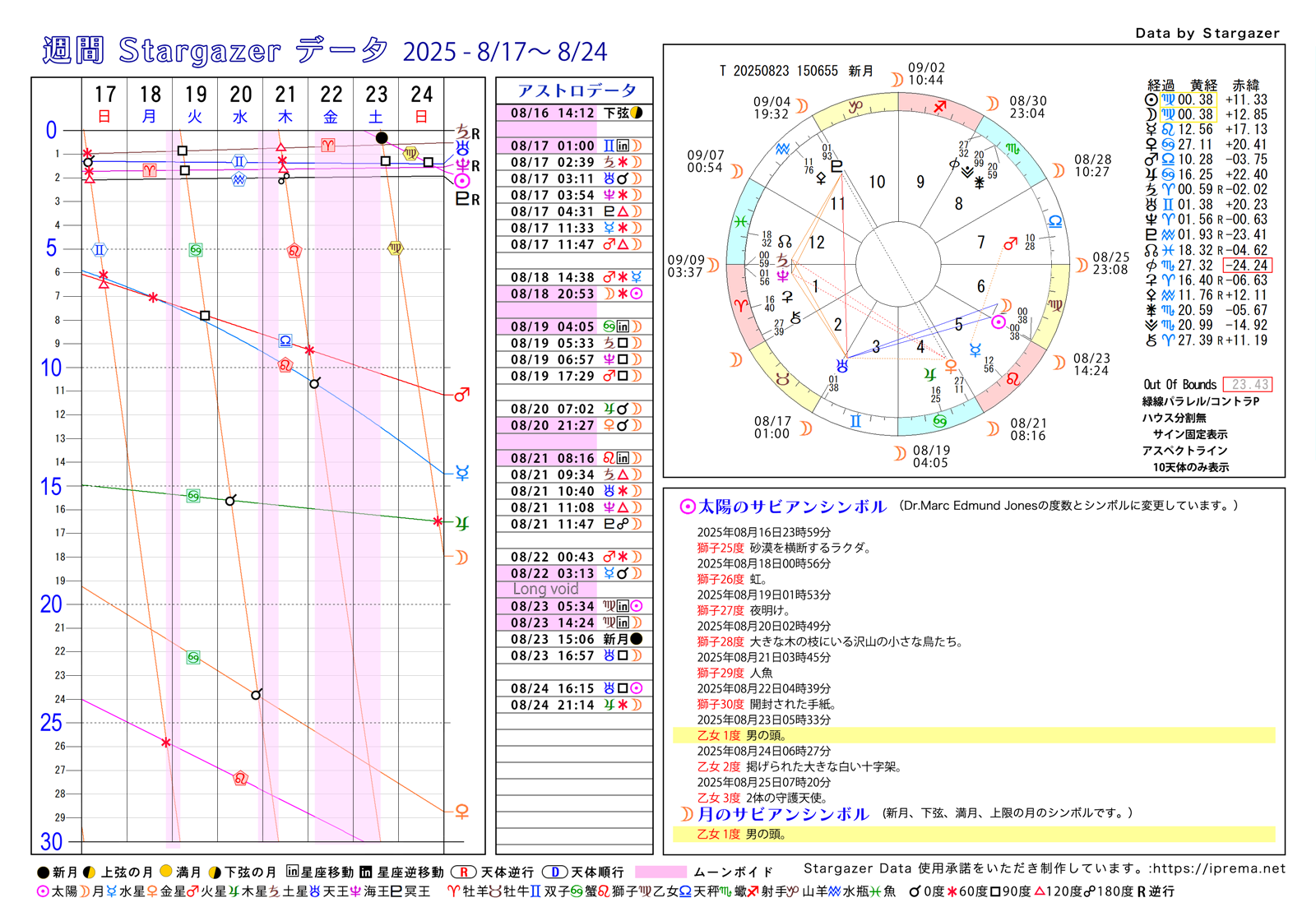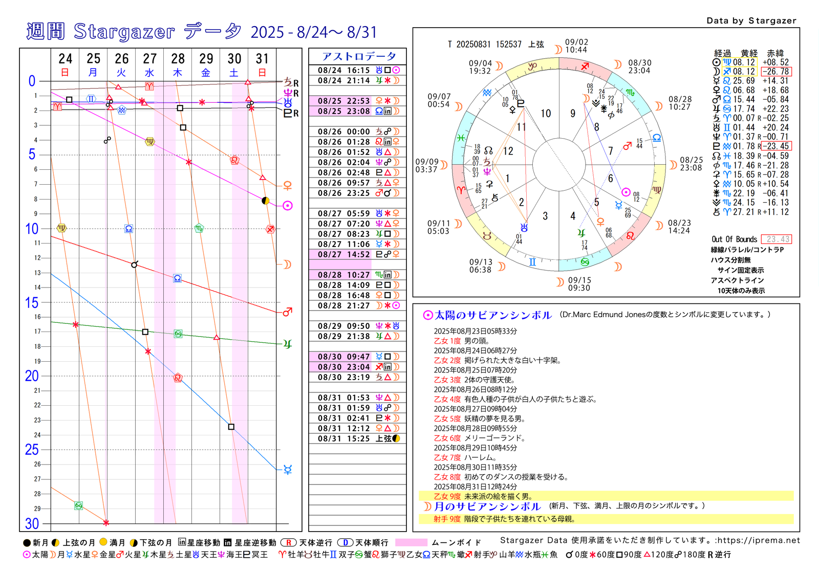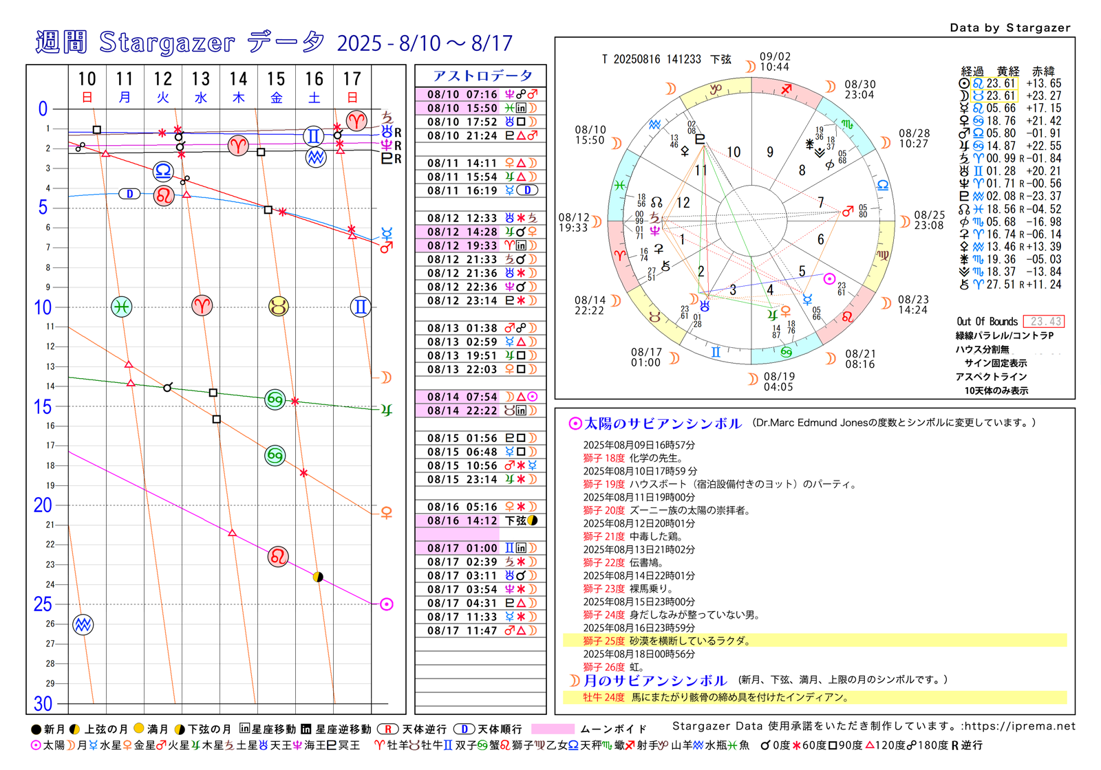 目次週間Stargazerデータ、2025年8月 ブログ よかったらシェアしてね! URLをコピーしました! キロンについてのまとめ サビアン72の物語・その1~6 牡羊座 この記事を書いた人 愛プレマ 40代半ばより占星術を研究しています。途中仕事や子育てと学童の父母活動で進まない時期もありました。HPも一度は閉鎖してやり直している途中です。2022年より占いを専業として活動を再開しています。これからも色々な発表の場で活動したいと思います。 関連記事 占星術の構造から見る「好きなこと」と「収入」のギャップ 2025年11月9日 モーニングページとカタルシス 2025年11月9日 マインドセットとは? 2025年10月25日 お金のブロック、ホロスコープからの原因発見とその外し方 2025年10月25日 トランプ大統領と高市新総理,サビアンオラクルで占ってみた 2025年10月24日 高市首相をサビアンオラクルで占ってみました。 2025年10月22日 トランプ大統領と安部昭惠さんサビアンオラクルで占ってみた 2025年10月21日 テマ・ムンディ(Thema Mundi)神話的ホロスコープとはなにか 2025年10月7日 コメント コメントする コメントをキャンセルコメント ※ 名前 ※ メール ※ サイト 次回のコメントで使用するためブラウザーに自分の名前、メールアドレス、サイトを保存する。 Δ