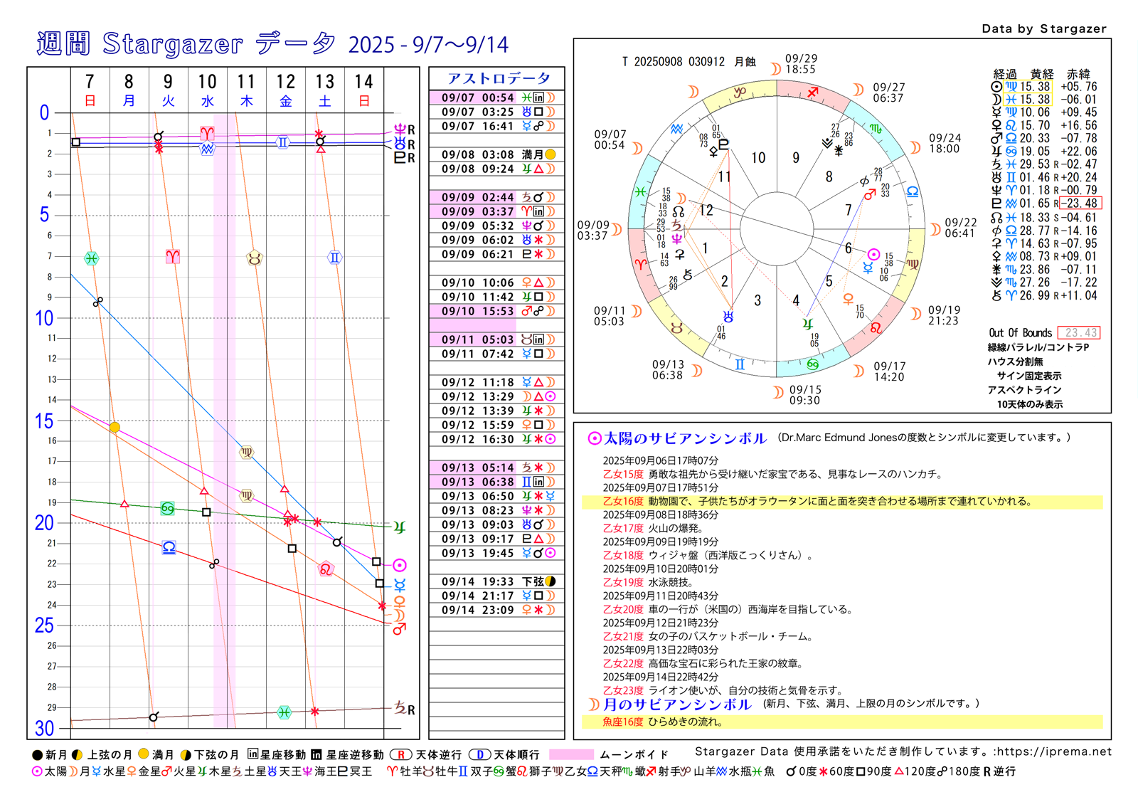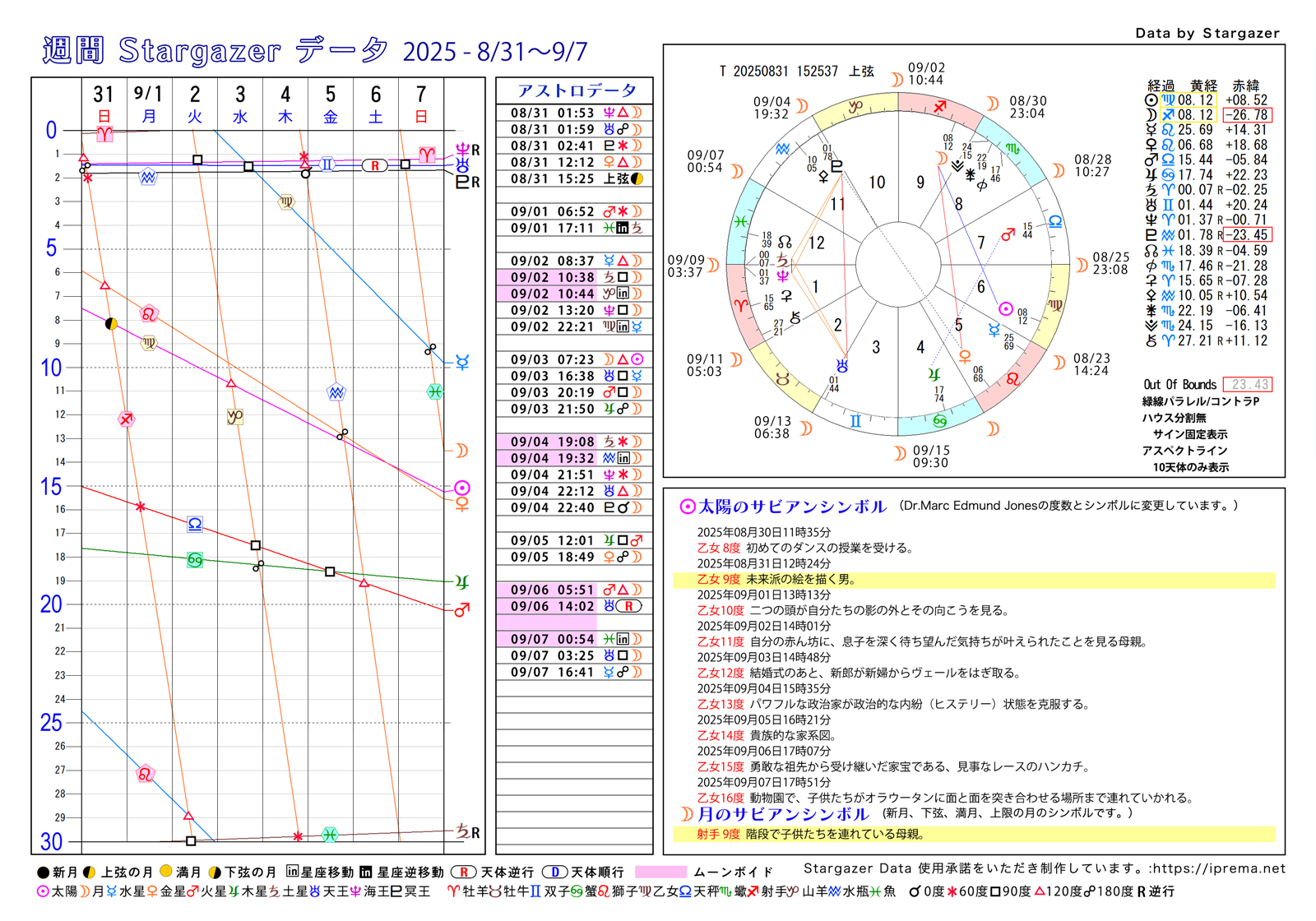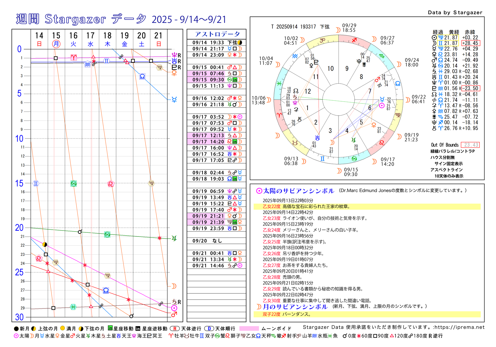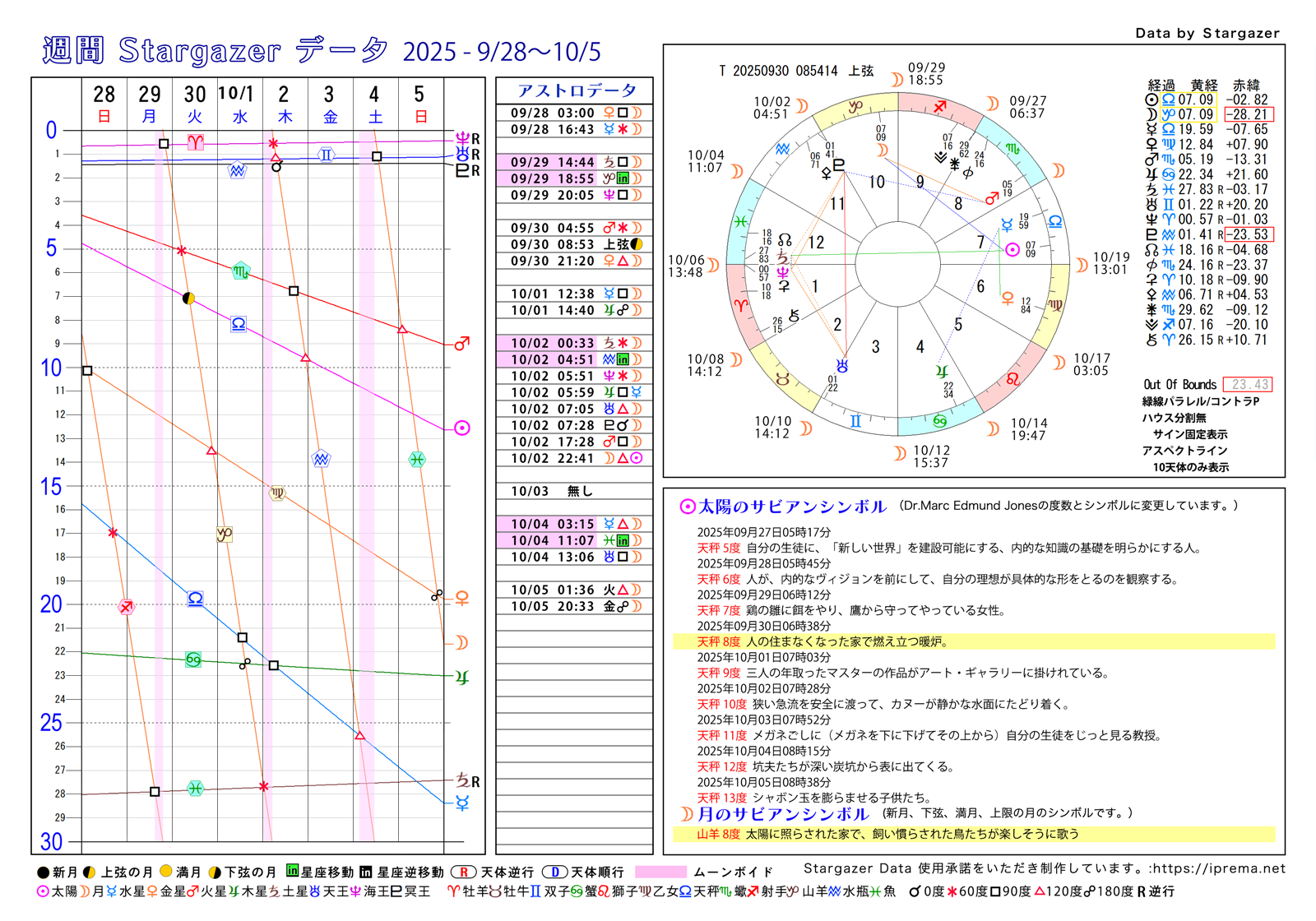 目次週間Stargazerデータ、2025年9月 週間SGデータ よかったらシェアしてね! URLをコピーしました! 場所の変化でASCはどのくらい変わるのか 月の欠損理論、なぜ賛否両論が激しく対立するのか? この記事を書いた人 愛プレマ 40代半ばより占星術を研究しています。途中仕事や子育てと学童の父母活動で進まない時期もありました。HPも一度は閉鎖してやり直している途中です。2022年より占いを専業として活動を再開しています。これからも色々な発表の場で活動したいと思います。 関連記事 週間Stargazerデータ、2025年7月 2025年5月2日 週間Stargazerデータ、2025年6月 2025年5月2日 週間Stargazerデータ、2025年5月 2025年4月8日 週間Stargazerデータ、2025年4月 2025年3月30日 週間Stargazerデータ、2025年3月 2025年3月1日 週間Stargazerデータ、2025年2月 2025年1月6日 週間Stargazerデータ、2025年1月 2024年12月21日 週間SGデータ 2024年12/1から2025年1/5 2024年11月29日 コメント コメントする コメントをキャンセルコメント ※ 名前 ※ メール ※ サイト 次回のコメントで使用するためブラウザーに自分の名前、メールアドレス、サイトを保存する。 Δ
