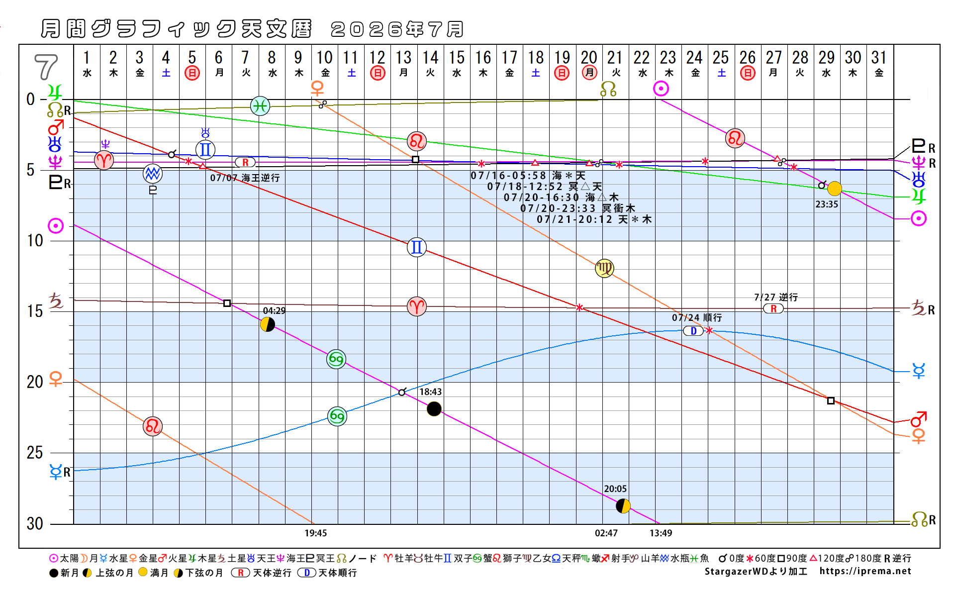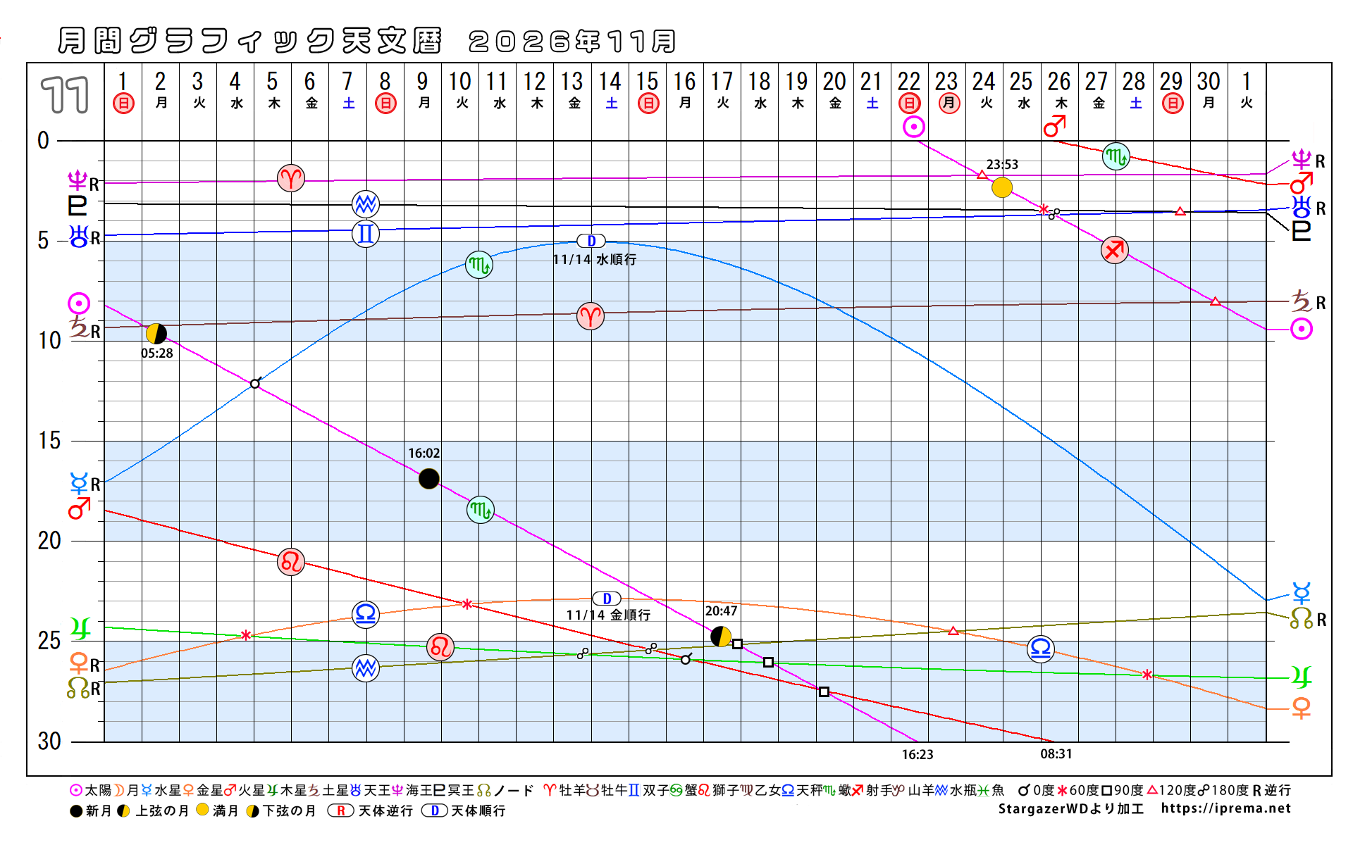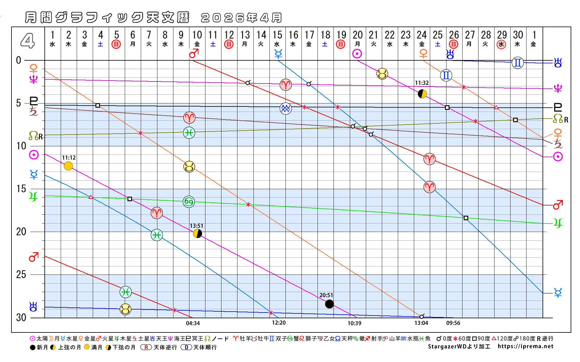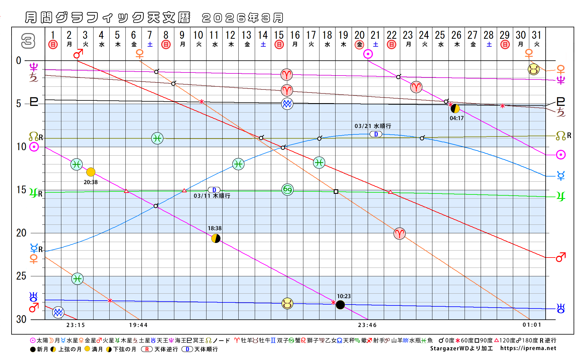目次2026年、月別グラフィック天文暦 グラフィック天文歴 よかったらシェアしてね! URLをコピーしました! トランプ大統領と安部昭惠さんサビアンオラクルで占ってみた 2025年、月別グラフィック天文暦 この記事を書いた人 愛プレマ 40代半ばより占星術を研究しています。途中仕事や子育てと学童の父母活動で進まない時期もありました。HPも一度は閉鎖してやり直している途中です。2022年より占いを専業として活動を再開しています。これからも色々な発表の場で活動したいと思います。 関連記事 30年グラフィック天文暦 1,850年から2029年 2025年11月12日 2025年、月別グラフィック天文暦 2025年10月22日 2025-9/6~2026-2/4の天王星逆行の意味 2025年9月6日 月間グラフィック天文暦2025/9月から12月 2025年8月30日 月間グラフィック天文暦 2025年5月から12月 2025年5月29日 4ヶ月グラフィック天文暦 2025 2025年4月29日 週間SGデータ2024/11/10~11/17 2024年11月8日 週間SGデータ2024/11/3~11/10 2024年11月1日 コメント コメントする コメントをキャンセルコメント ※ 名前 ※ メール ※ サイト 次回のコメントで使用するためブラウザーに自分の名前、メールアドレス、サイトを保存する。 Δ