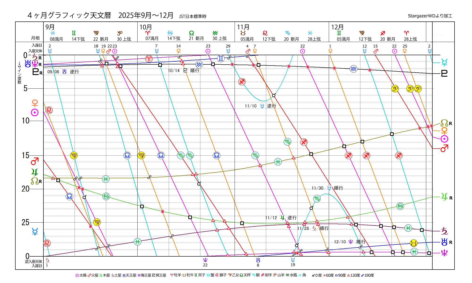 目次4ヶ月グラフィック天文暦 グラフィック天文歴 よかったらシェアしてね! URLをコピーしました! 週間Stargazerデータ、2025年5月 獅子座のサビアンシンボル第2グループ この記事を書いた人 愛プレマ 40代半ばより占星術を研究しています。途中仕事や子育てと学童の父母活動で進まない時期もありました。HPも一度は閉鎖してやり直している途中です。2022年より占いを専業として活動を再開しています。これからも色々な発表の場で活動したいと思います。 関連記事 30年グラフィック天文暦 1,850年から2029年 2025年11月12日 2025年、月別グラフィック天文暦 2025年10月22日 2026年、月別グラフィック天文暦 2025年10月21日 2025-9/6~2026-2/4の天王星逆行の意味 2025年9月6日 月間グラフィック天文暦2025/9月から12月 2025年8月30日 月間グラフィック天文暦 2025年5月から12月 2025年5月29日 週間SGデータ2024/11/10~11/17 2024年11月8日 週間SGデータ2024/11/3~11/10 2024年11月1日 コメント コメントする コメントをキャンセルコメント ※ 名前 ※ メール ※ サイト 次回のコメントで使用するためブラウザーに自分の名前、メールアドレス、サイトを保存する。 Δ